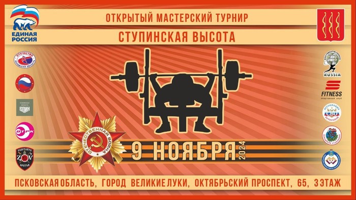 0+ Спортивное мероприятие Турнир Ступинская высота 9 ноября 2024 г. 40Место проведения:Фитнес клуб «С-Фитнес», ООО «С-фитнес»9 ноября 2024 г.Фитнес клуб «С-Фитнес», ООО «С-фитнес» пр-т Октябрьский, д. 65, г. Великие Луки, Псковская обл.,182110 (смотреть на карте)