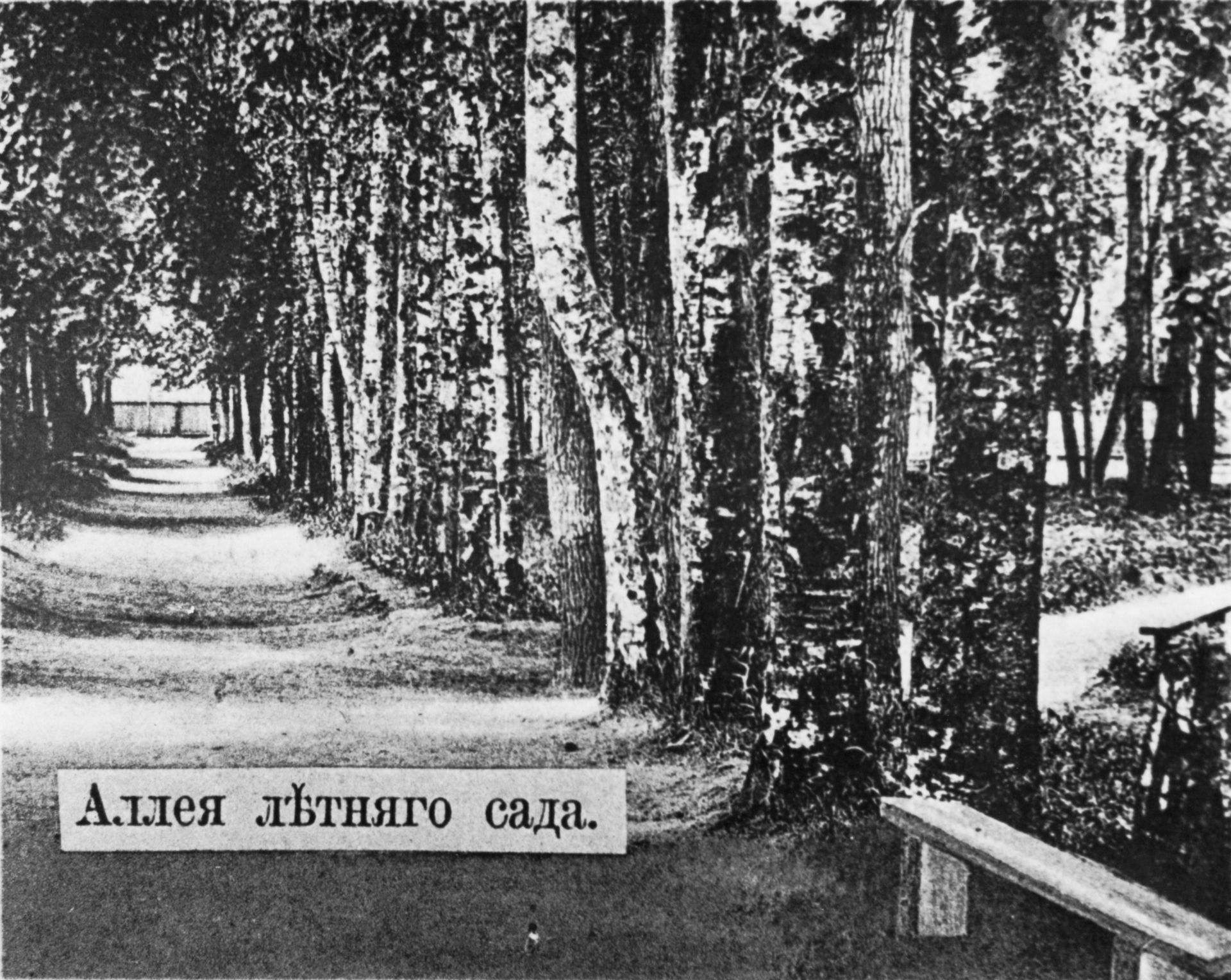 Как вспоминал А. П. Лопырёв в книге "Город моего детства", Летний сад располагался в конце Петербургской (Розы Люксембург) улицы, на пересечении её с Долгой (Ставского).