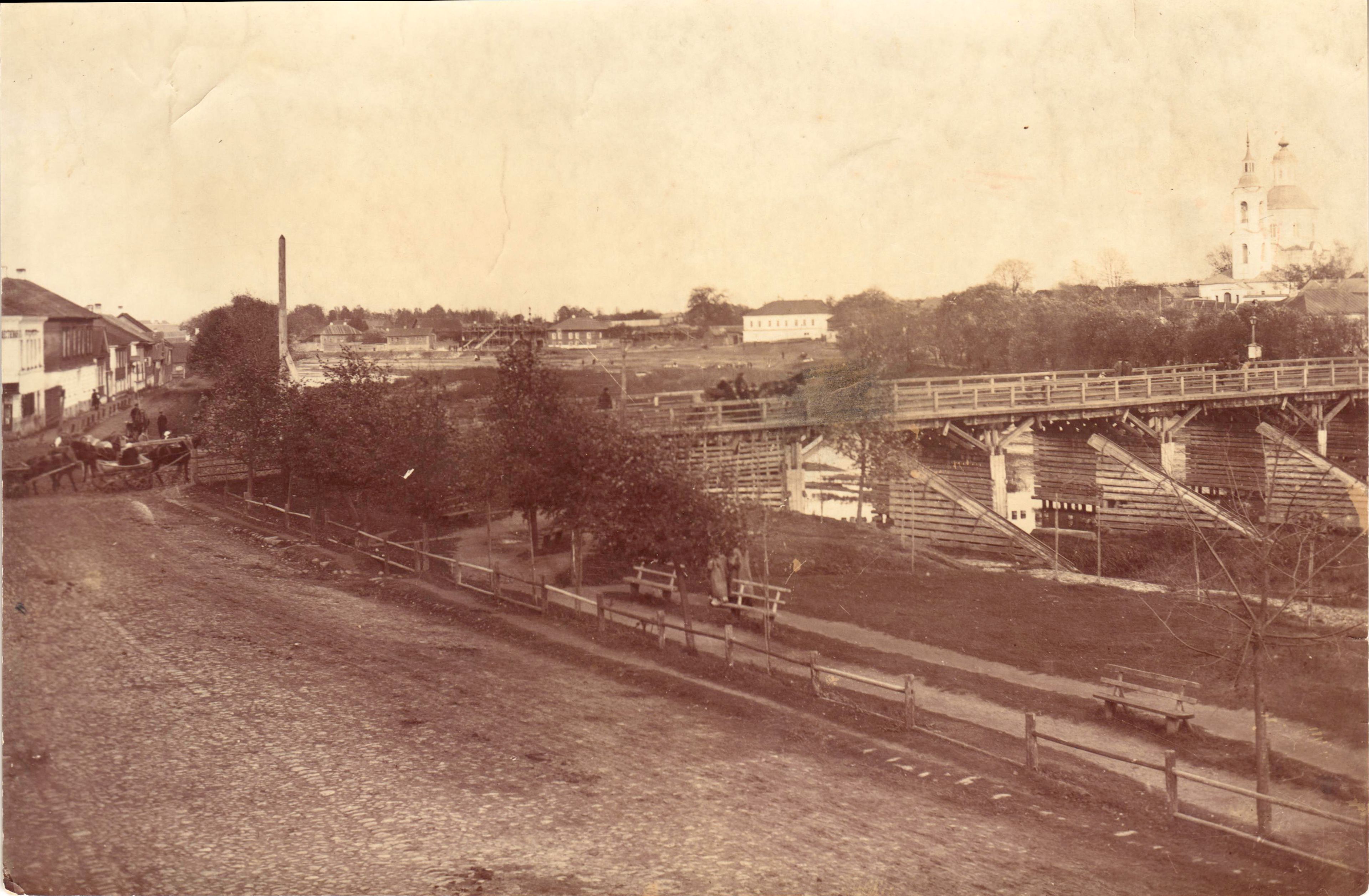 Мост связывал две главные улицы города Петербургскую и Троицкую. Справа видна Никольская церковь.
