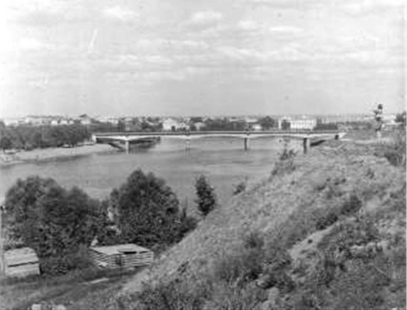 Вид с крепостного вала на новый мост через реку Ловать, 1967 год.