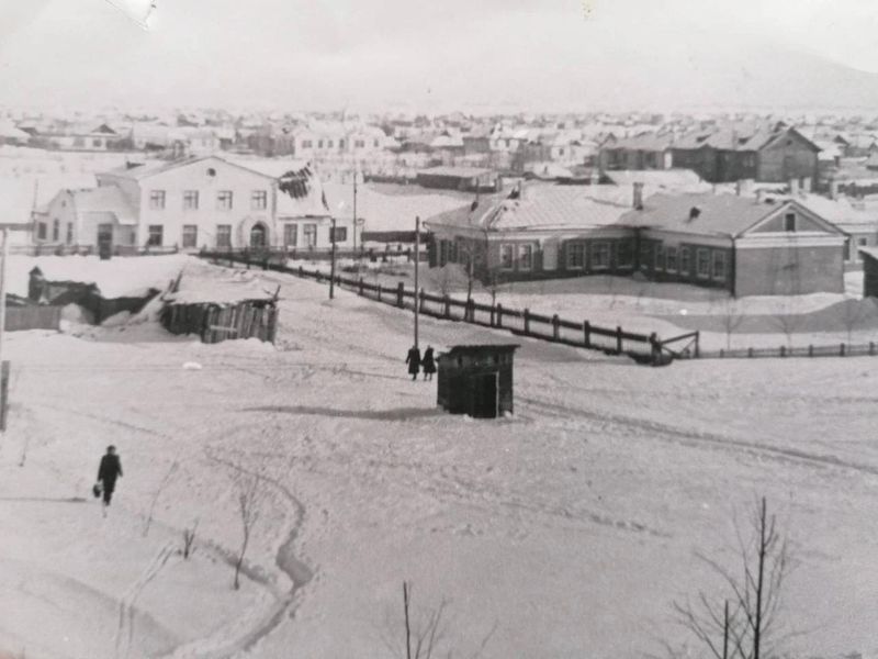 Слева двухэтажное здание Дом пионеров, на заднем плане оз.Соломенское