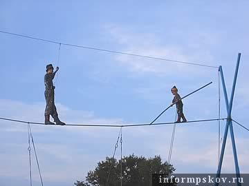 В Пскове на стадионе «Машиностроитель» на высоте 15 метров прошло выступление 4- летнего канатоходца. Как передает корреспондент ПАИ, в городе с однодневными гастролями побывала династия канатоходцев Камиловых из Узбекистана. В настоящий момент её возглавляет народный артист Киргизии Равшан Камилов, который сам выступал на канате больше 40 лет.