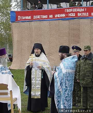 В завершении молебна была прочитана особая молитва «На благое совершение предстоящих учений» и провозглашено многолетие Святейшему Патриарху Алексию II, Высокопреосвященнейшему Владыке Евсевию, Богохранимой Российской державе, военоначальникам и всему Христолюбивому Российскому воинству. Во время «Многолетия» архимандрит Тихон крестообразно осенял все стороны света. Затем Наместник Псково-Печерского монастыря сделал подарки руководящему составу дивизии - книги старца Иоанна (Крестьянкина). Общая молитва духовенства и воинства вызвала большой духовный подъем в дивизии.