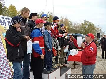 Главный приз псковского мотокросса – кубок «Авто-Лады» - достался команде Эстонии. Как сообщил корреспонденту ПАИ председатель Псковской областной федерации мотоспорта Алексей Караваев, эстонские гонщики набрали в командном зачете 562 очка и выиграли соревнования. Следующий результат – 517 очков – показала команда Санкт-Петербурга, а 3-е место завоевали псковичи, получив 464 очка.