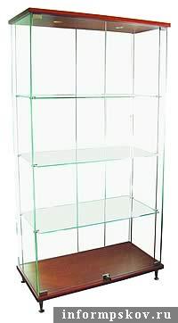 Важная конструктивная особенность витрины – возможность крепления полок на произвольной высоте. Вопрос оформления новой серии был решен в пользу древесного декора, дизайнеры остановили выбор на оттенке красного дерева.