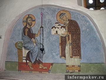С 13-ого века Иоанно-Предтеченский монастырь становится усыпальницей псковских княгинь – инокинь. В псковских синодиках упоминаются имена 10 княгинь – инокинь, нашедших место вечного упокоения в стенах Ивановского монастыря, где они и принимали иноческое пострижение. В 1623 году монастырь получил особую жалованную грамоту от имени Царя и Патриарха Филарета (Михаила Федоровича), по которой имел привилегии в количестве земельных владений, и юридические особые права. Особым попечением облагодетельствовала монастырь Императрица Мария Александровна, и в числе прочего пожертвовала в 1859 году ковер к гробнице благоверной Евпраксии. Сейчас на гробнице находится парчовая вышитая плащаница с изображением благоверной Евпраксии современной работы и вышитым текстом тропаря, кондака и молитвы мученице. И плащаница, и хоругви в храме являются художественной работой матушки Марины, супруги настоятеля храма.