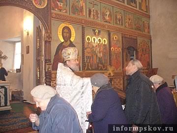 Сегодня собором псковского духовенства была совершена Божественная Литургия в храме Архангелов Михаила и Гавриила (1339), чей Престол освящен в честь Собора Архистратига Михаила и прочих Небесных Сил безплотных. Богослужение начинал старейший священник Псковской епархии протоиерей Александр Михайлов из села Верхний Мост Порховского района, сослужили ему настоятель Архангельского храма протоиерей Георгий Быков, духовник Псковской епархии протоиерей Михаил Мельник и другие священники – все в белых ризах.