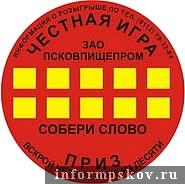 С 1 декабря стартует акция ЗАО «Псковпищепром» «Найди свой приз». Как сообщили корреспонденту ПАИ в отделе маркетинга и рекламы ЗАО «Псковпищепром», каждая единица качественного псковского продукта торговой марки «ВОДОФФКА» будет оклеена этикеткой с 10 окошечками со стираемым защитным слоем. В этих окошечках будут буквы, из которых можно составить слово «ПРИЗ».