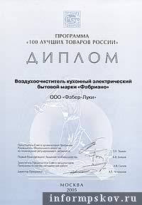 В ноябре производитель бытовых кухонных воздухоочистителей ООО «Фабер-Луки» (МАЭП, город Великие Луки, Псковская область) стало дипломантом Программы «100 лучших товаров России». Как сообщили корреспонденту ПАИ в пресс-службе Международной Ассоциации Экономических Партнёров (МАЭП), известие о решении Совета организаторов Программы совпало с выпуском 350-тысячного воздухоочистителя. Юбилейный воздухоочиститель был изготовлен 25 ноября.