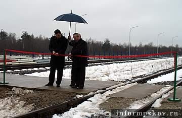 Красную ленту, перетянутую через железнодорожную ветку базы, перерезали директор "Псковнефтьтерминала" Олег Трубачев, председатель комитета по инвестициям и стратегическому развитию администрации Псковской области Алексей Сапрыкин и заместитель мэра Пскова по земельным отношениям и строительству Владимир Сырцов. На открытие также пригласили строителей объекта, заказчиков и учредителей.