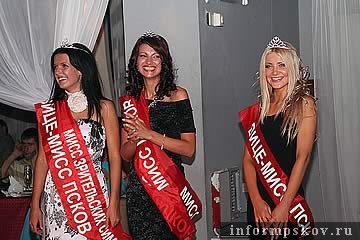 На городском конкурсе красоты титул "Мисс Псков-2006" завоевала 22-летняя Екатерина Носкова. Об этом передает корреспондент ПАИ. Звание первой вице-мисс и "Мисс зрительских симпатий" заслужила Элеонора Разумова, которая получила в подарок телевизор. Второй вице-мисс стала Яна Кашура. Помимо короны девушке достался приз – музыкальный центр. Главной красавице города одно из туристических агентств предоставило в качестве подарка поездку в Прагу.