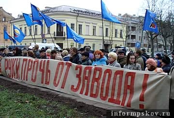 Решение о проведении митинга в знак протеста против приостановки деятельности предприятия было принято 7 декабря на собрании коллектива. Также 7 декабря работники завода обратились к президенту России Владимиру Путину с просьбой не дать закрыть предприятие. Под открытым письмом подписались более 400 человек. "Мы обращаемся к Вам с огромной просьбой: помогите отстоять одно из лучших предприятий Псковской области, остановите этот беспредел, не дайте нам пополнить ряды безработных", - говорится в нем. Обращение также направлено председателю Госдумы РФ Борису Грызлову, председателю Совета Федерации РФ Сергею Миронову, председателю Правительства РФ Михаилу Фрадкову, Генеральному прокурору РФ Юрию Чайке и полномочному представителю Президента РФ в Северо-Западном федеральном округе Илье Клебанову.