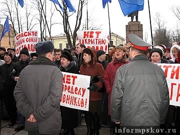Пообщались с пикетирующими только вице–мэр Пскова Александр Гончаренко и заместитель председателя комитета по связям с общественностью мэрии Пскова Владимир Рыбаков. Из областных властей на месте событий был замечен глава облспорткомитета Александр Коновалов, который стоял в стороне и улыбался.