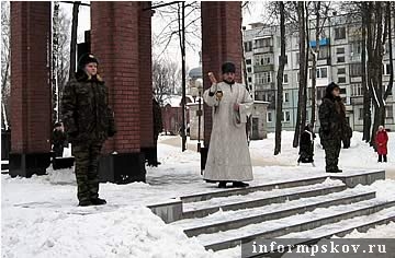 В Пскове 15 февраля почтили память советских военнослужащих, погибших во время войны Афганистане и других вооруженных конфликтах, отдав им воинские почести. Как передает корреспондент ПАИ, к 17.00 в сквере у Гарнизонного дома офицеров собралось несколько десятков ветеранов – участников боевых действий. Официальная часть началась с панихиды, которую отслужил настоятель храма Александра Невского отец Олег (Тэор).