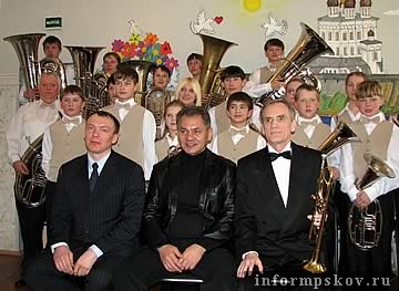 В свою очередь, Сергей Шойгу вручил детскому оркестру новое звуковое оборудование. "Ваше оборудование просто фантастично, дети будут играть на нём, и записывать музыку", - сказал А. Роор. Самые же маленькие музыканты Иван Симонов и Ольга Шелестова получили из рук министра наручные часы.
