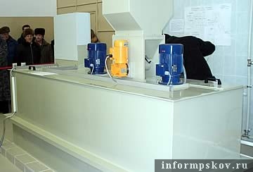 Новая очистная установка состоит из трех камер. Очиститель будет поступать в аппарат автоматически. После растворения в первой камере, флокулянт переходит во вторую, где происходит "вызревание" порошка. Из третьей камеры раствор концентрацией 0,05% поступает в воду. В результате пятый блок очищает 70% от всей поставляемой псковичам воды.
