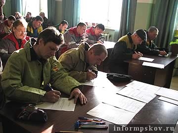 Затем конкурсанты перешли к практике. Слесарям предложили разобрать и прочистить задвижку. После выполнения задания, качество работы проверяли на специальном станке. В соседнем цехе в мастерстве соревновалась группа сварщиков, которые занимались заготовкой деталей для псковских теплосетей. По словам М. Радионова, самое тяжелое задание предстоит электрикам. "Им надо будет собрать очень сложную сеть. Я думаю, там работы на час", - рассказал он.