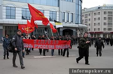 Шествие и митинг «Коммунистов Псковщины» и людей под флагами национал-большевиков прошли в Пскове днём 5 апреля, передаёт корреспондент ПАИ. Мероприятие было посвящено 5 апреля Дню русской нации. За его участниками наблюдали несколько десятков сотрудников милиции. По неофициальным сведениям, к охране правопорядка было привлечено около 200 милиционеров. На месте событий присутствовал начальник УВД Пскова Виктор Петров, который несколько раз информировал организаторов, что акция незаконна.