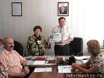 Руководитель Гостиной Псковского отделения Красного креста Татьяна Лаврентьева вручила В. Кукушкину благодарственное письмо. «С вашей помощью мы получили возможность продолжить работу по созданию и оснащению Гостиной», отметила она. Т. Лаврентьева также пожелала благополучия коллективу завода «Псковкабель» и «дальнейшего укрепления деловых отношений с Псковским Красным Крестом». «Обращайтесь, но не каждый день», пошутил в ответ В. Кукушкин.