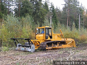 Трактор-кусторез испытали энергетики в Псковском районе
