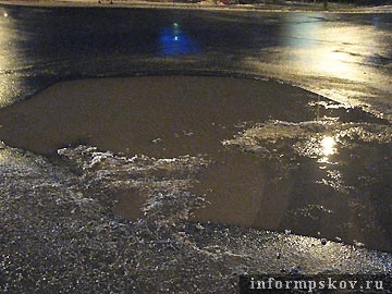 Провалился асфальт на одной из "дорог Единой России" в Пскове
