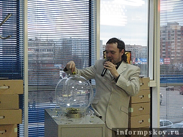 22 декабря в Пскове на втором этаже гипермаркета "Империал" состоялся розыгрыш лотереи "Десяточка", билеты которой раздавали на избирательных участках области во время выборов депутатов Государственной Думы РФ 2 декабря.