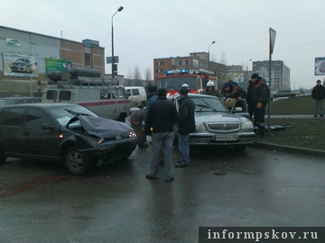 Два человека пострадали при столкновении "Волги" и "Гольфа" в Пскове