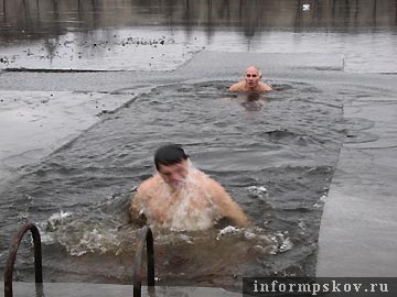 В "крещенскую купель" на реке Великой окунулись православные псковичи и печеряне