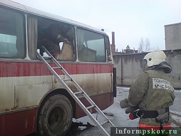 Тушение возгорания на автоколонне отрабатывали псковские пожарные