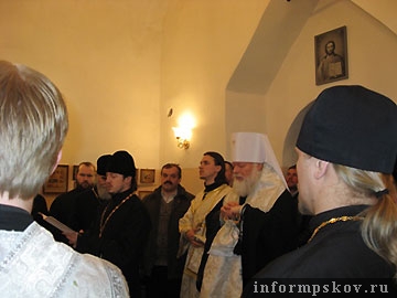 Митрополит Псковский и Великолукский Евсевий освятил крест храма Богоявления