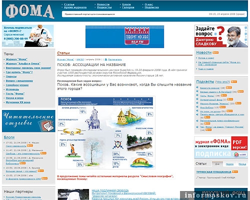 На фото: "псковская" страница сайта "Фома"