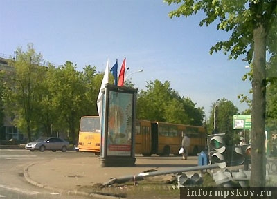 Светофор сбили на площади Ленина в Пскове