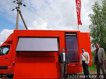 21 мая город Остров (Псковская область) посетили представители фирмы "VITO SERVISS" из города Резекне Латвийской Республики, которая специализируется на поставках отопительной техники. Как сообщила корреспонденту ПАИ первый заместитель главы Островского района Раиса Сирош, латыши привезли в Остров инновационный автомобиль с солнечными батареями и продемонстрировали своё оборудование в работе. Всего за один час котлы "VIESSMANN" нагрели воду до 45 градусов, при этом энергию они брали от солнечных батарей, установленных на фургоне автомобиля.