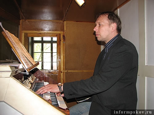 На фото: органист Ааро Тецман на концерте в печорской кирхе