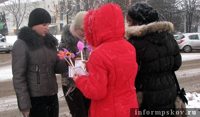 Бумажные цветы и спонтанную доброту дарили лицеисты псковичам