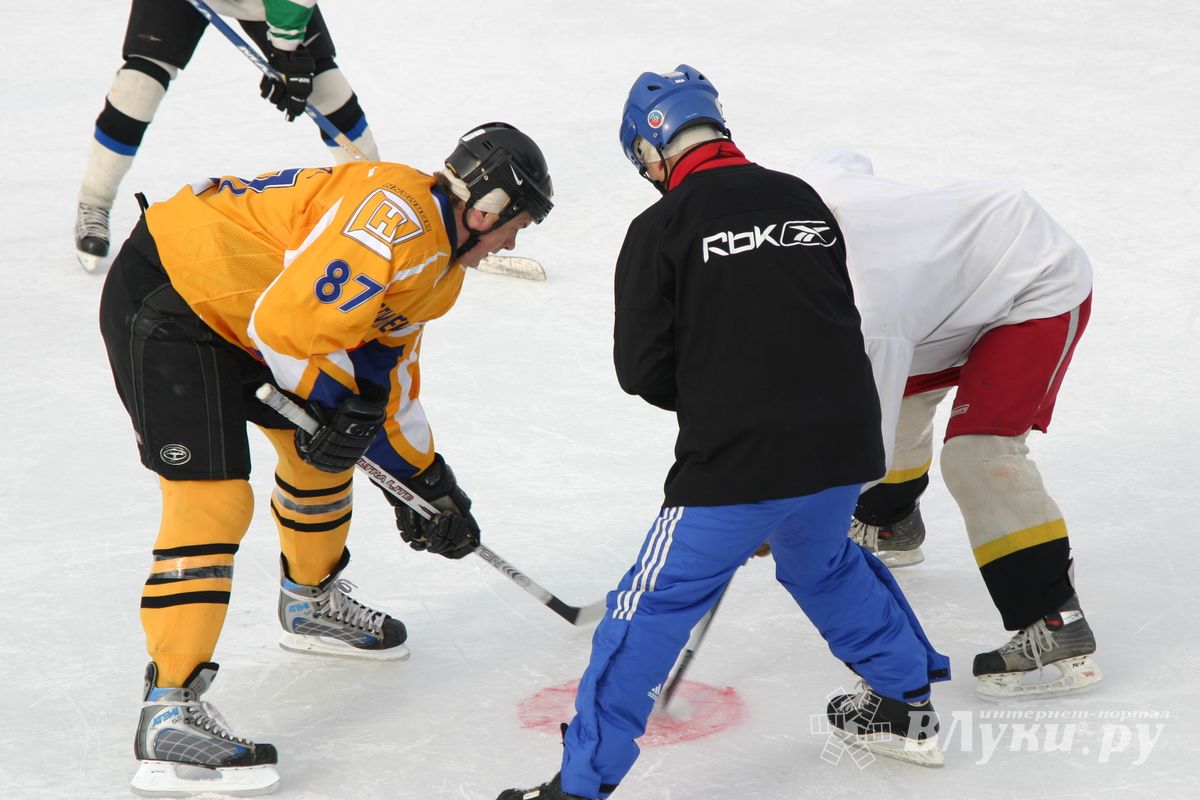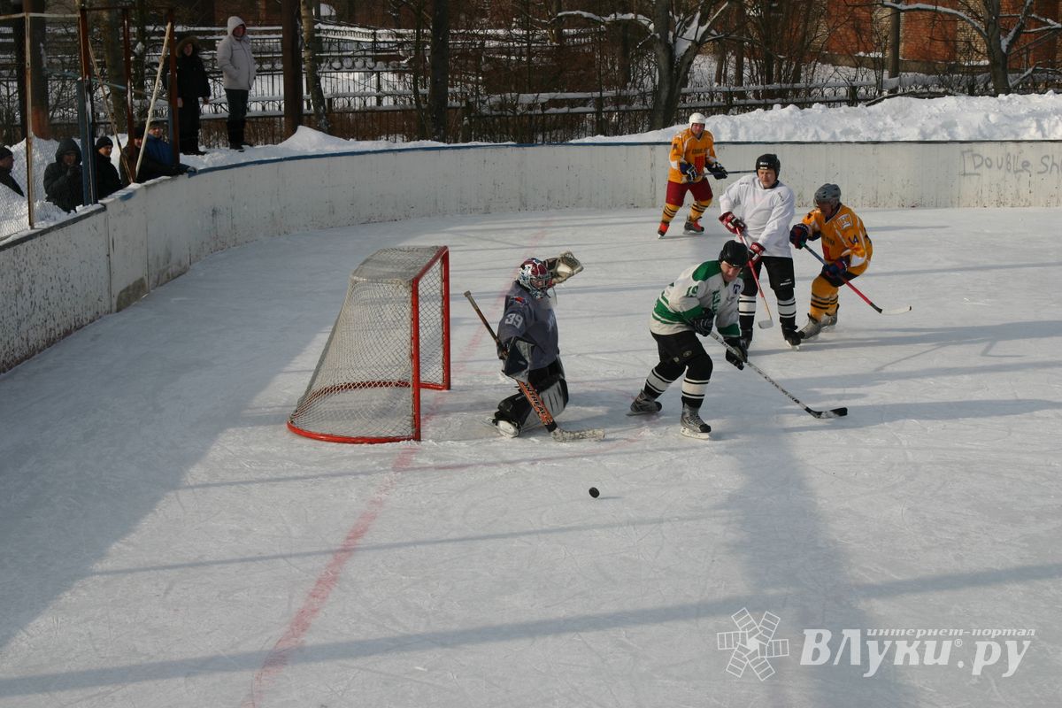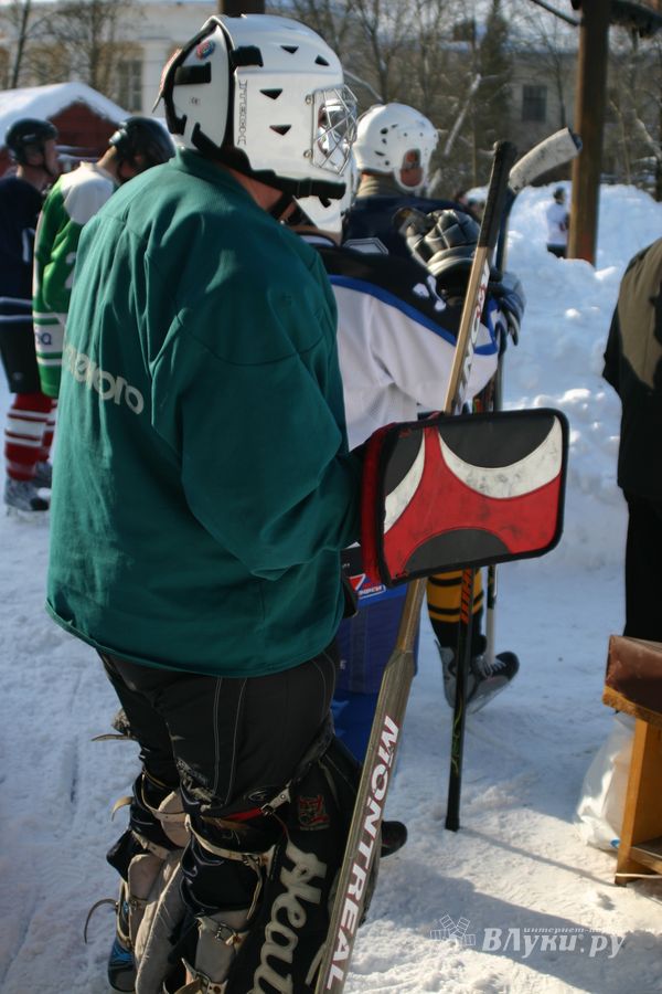 Итак, праздничные мероприятия 23 февраля начались в 11.00 возложением цветов на Воинском мемориальном захоронении. В это же время на стадионе «Экспресс» взял старт турнир по хоккею. Побороться за шестидесятисантиметровый Кубок (почти как кубок Стэнли) предстояло четырем командам. Две из них были представлены великолукскими хоккеистами, а две других - спортсменами из Острова и Бежаниц. Они-то и составили первую пару. Соответственно, следующая игра сводила две великолукские команды (условно назовем их «Великие Луки-1» и «Великие Луки-2»). Формула турнира была выбрана, пожалуй, самая оптимальная для проведения соревнований на открытом воздухе. Поражение сразу лишало проигравших шансов на первое место.