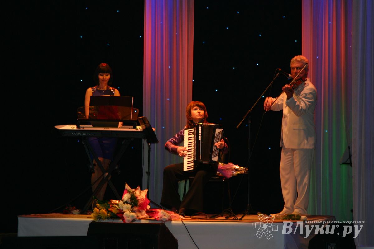 Виновников торжества поздравили камерный хор «Кант», музыкальный театр «Трубадур», хореографический коллектив «Даймонд», клуб восточного танца «Восточные сладости» и сами участники трио «Ностальжи» - Т. Якименко (худ. рук., аккордеон), А.Арсентьева (клавишные) и В.Смольченков (скрипка) - не покидавшие сцену, практически в течение всего концерта. Дополнительный шарм произведениям, исполненным в тот вечер, придавали замечательные голоса солисток трио С. Карповой и Е. Савченко.