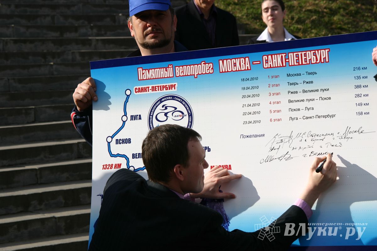 20 апреля участники велопробега «Москва — Санкт-Петербург», посвященного 65-летию Великой Победы, прибыли в Великие Луки. С въездом в наш город закончился третий этап этого юбилейного мероприятия, чтобы на следующий день дать старт этапу очередному, четвертому.