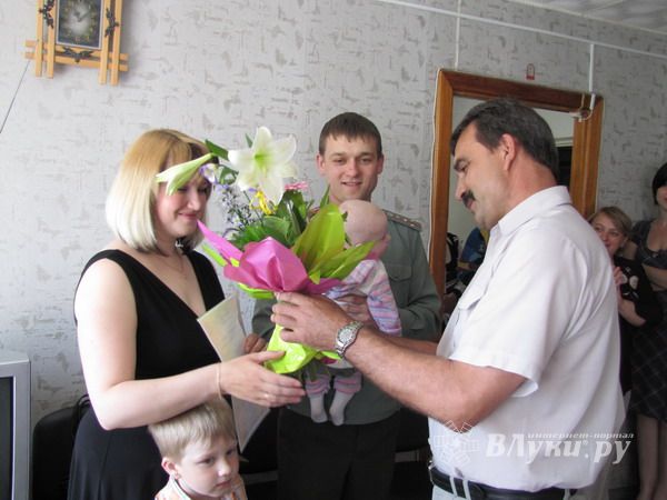 «За последние 20 лет это первый случай в нашей части, когда молодой офицер назначен на такую ответственную должность. Но Сергей занимает ее по праву. Это очень ответственный, грамотный, целеустремлённый человек — настоящий комбат. А Татьяна — очень хорошая мама и жена», — отметил командир части Олег Иваскевич, который пришел в Управление ПФР в Островском районе поздравить молодую семью.