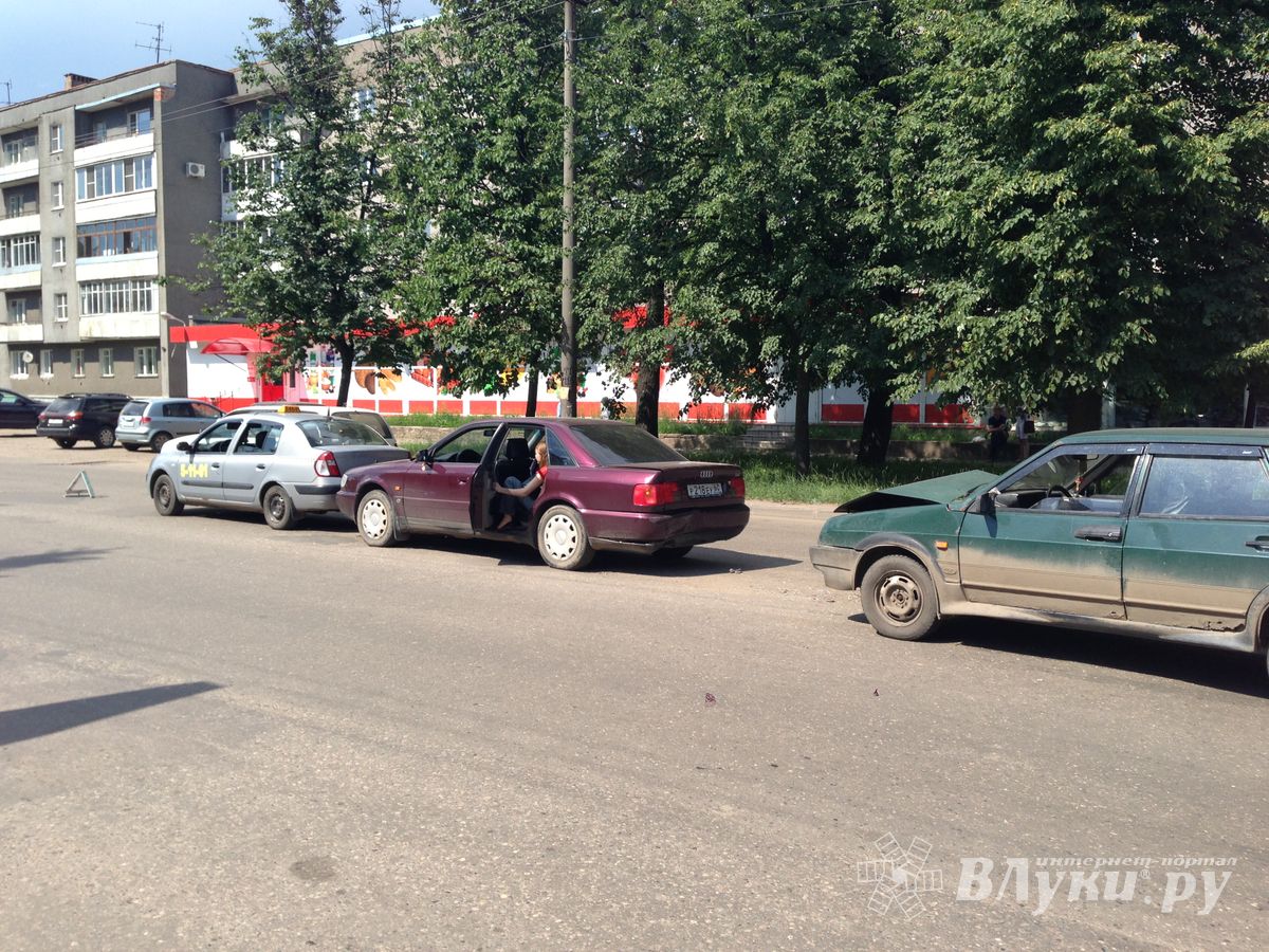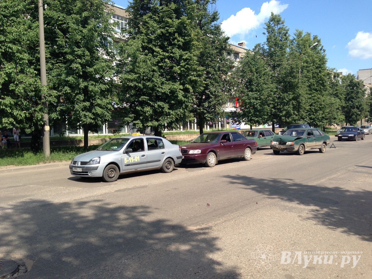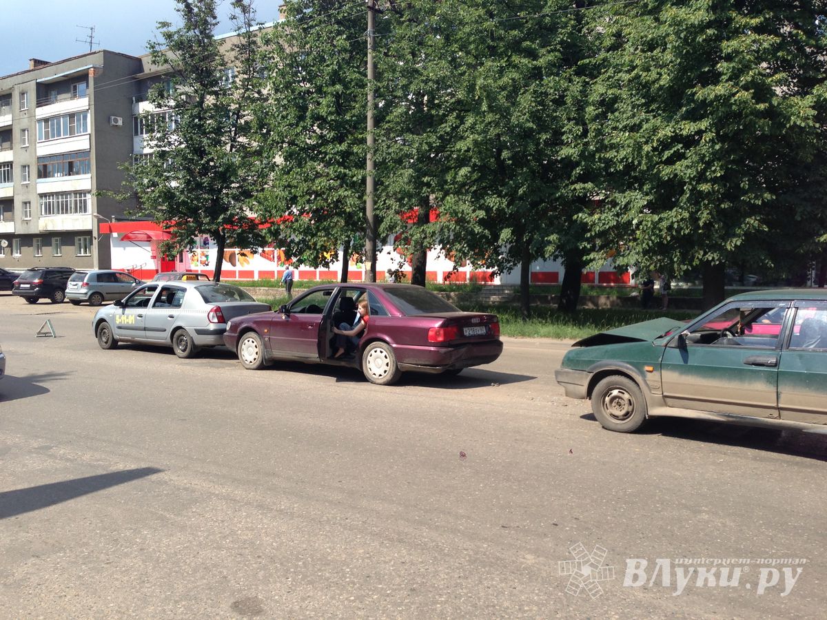 Еще одна авария произошла сегодня днем в Великих Луках. На проспекте Гагарина возле дома 19 столкнулись три автомобиля. В машину такси въехал автомобиль «Ауди», в который, в свою очередь, срезалась модель ВАЗ-21099.