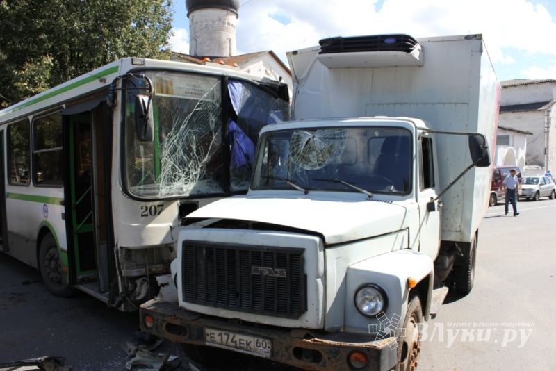 Сегодня в Пскове автобус врезался в грузовик (фото)