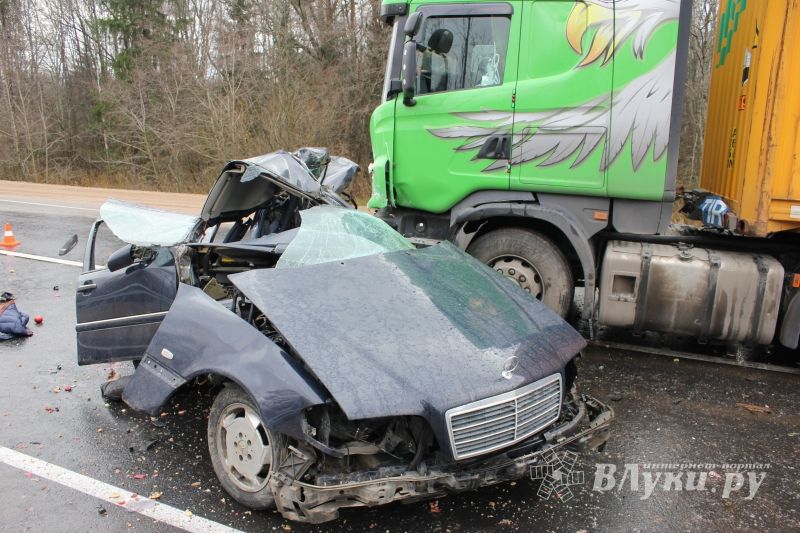 В результате столкновения Мерседеса и фуры в Псковской области погибли 2 человека (фото)