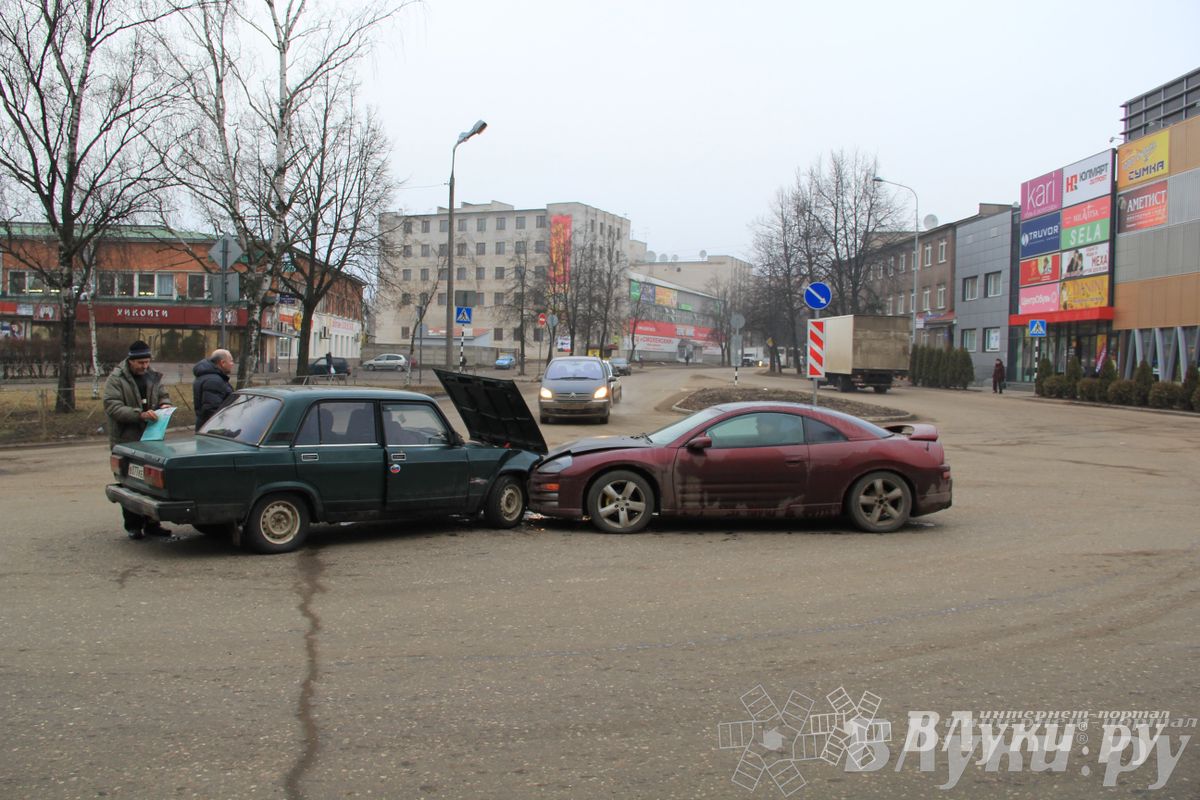 Сегодня утром на перекрёстке проспекта Октябрьский с улицей Ботвина произошла авария. Как передает корреспондент ВЛуки.ру, столкнулись автомобили «Мицубиси» и ВАЗ-2107.