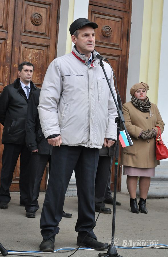 С. Н. Агарев, заместитель главы города, в своем выступлении призвал великолучан «пропустить через свою душу все события на Украине, помочь нашим братьям словом и делом». Заместитель главы администрации города И. А. Бушенкова отметила: «В эти трудные минуты мы должны поддержать украинцев и сказать «нет» тем действиям, которые совершает кучка бандитов, взявшие власть незаконным путем».