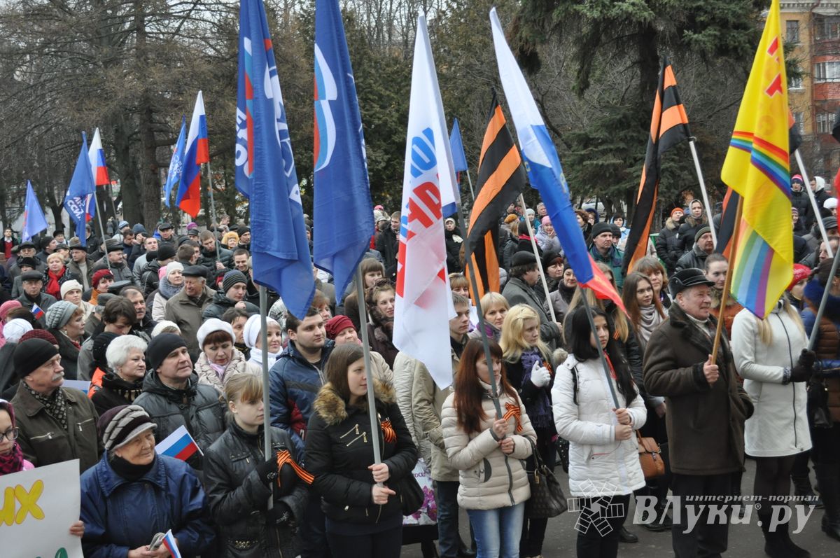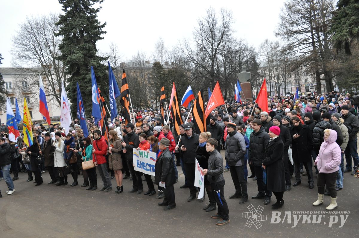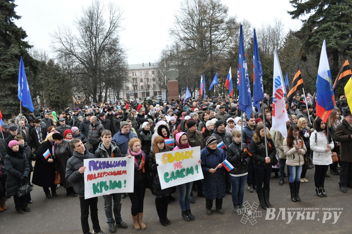 По итогам митинга великолучане поддержали обращение к Президенту РФ, в котором выражается одобрение ответственным и решительным действиям правительства по нормализации общественно-политической обстановки на Украине и отстаиванию крымчанами права на самоопределение.