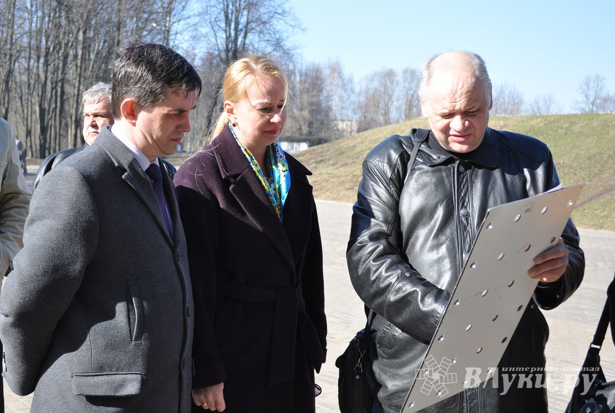 Выездное заседание рабочей группы по созданию Аллеи Героев Воинской славы состоялось в районе мемориальной зоны у Вечного огня на набережной реки Ловать, где и предполагается установка памятных знаков героям, вошедшим в утверждённый ранее список. Участники встречи, в числе которых были глава администрации города и его заместители, депутаты великолукской городской думы, председатель городского Совета ветеранов войны и труда, руководители сферы культуры, комитета по строительству и архитектуре, краеведы и общественность, познакомились с уже изготовленным макетом знака. Конструкцию для её утверждения членами рабочей группы представил архитектор П. Н. Медведев, который рассказал о материалах, из которых она будет изготовлена, объяснил особенности её установки, для чего потребуется специальное бетонное основание.
