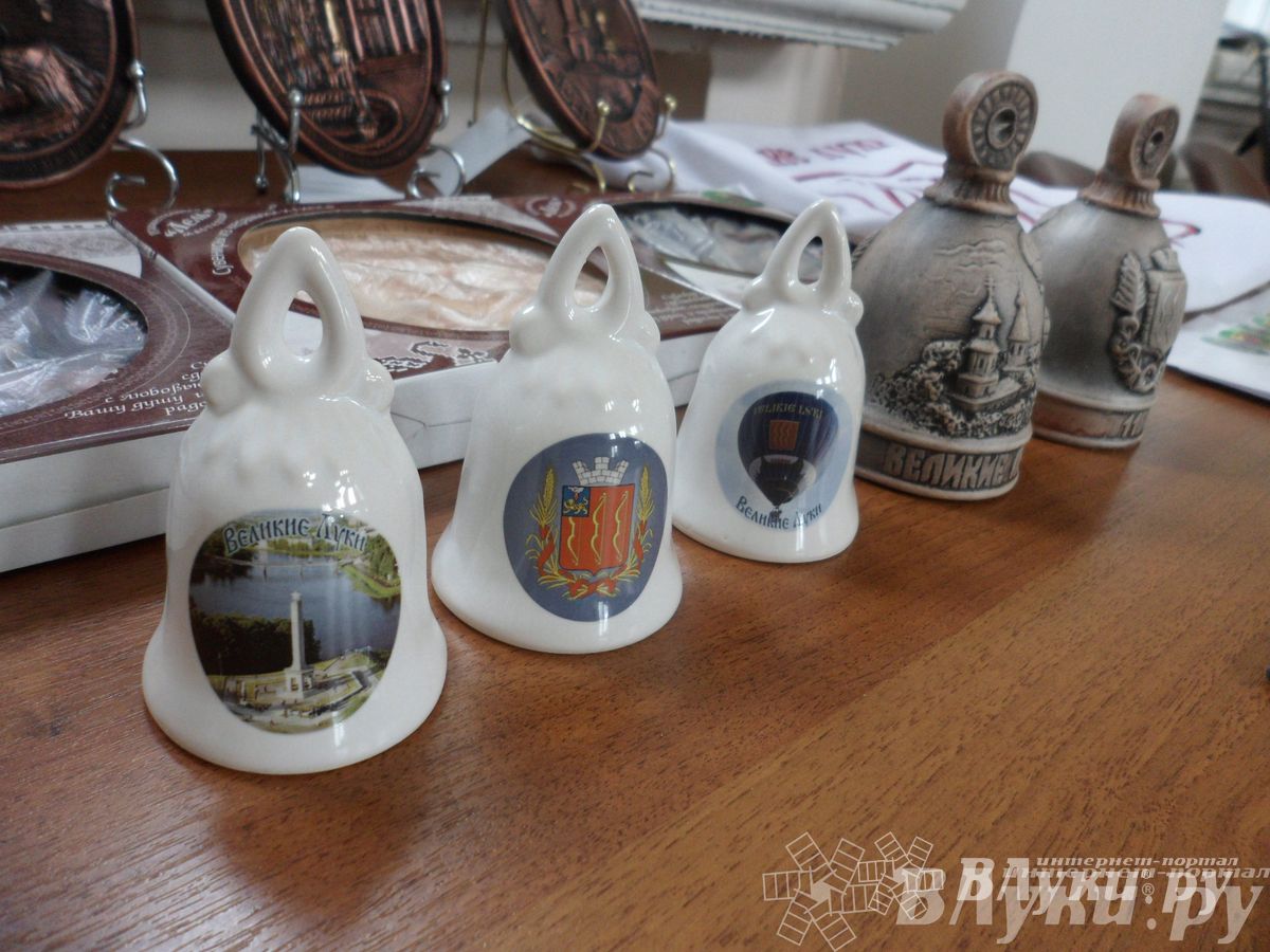 На совещании свою продукцию представила фирма «Арт-сувенир». Кружки, магниты, тарелочки, футболки и другие сувениры с видами города станут памятным подарком к празднику. Также присутствующим был продемонстрирован торт в форме герба Великих Лук от магазина «Телекс».