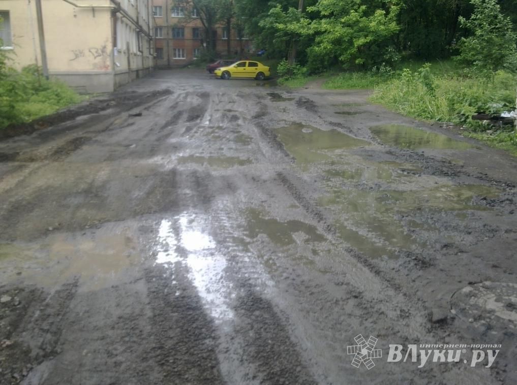 Грязь, лужи и ямы остались после грейдера во дворах по проспекту Гагарина в Великих Луках (фото)