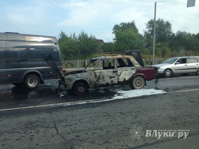 Как сообщили Интернет-порталу ВЛуки.ру в пресс-службе ГУ МЧС области, в тот вечер супруги, заправив бытовой газовый баллон, возвращались домой. Ожидая на светофоре, водитель попытался закурить: два раза чиркнул зажигалкой, как неожиданно возникло пламя. Супруги только и успели быстро покинуть машину, а мужчина еще и попытался откатить транспортное средство ближе к обочине (ведь все это происходило прямо на проезжей части!). Машину быстро охватило пламя, и сделать это ему не удалось. Вызвали пожарную охрану. Для ликвидации последствий пожара были привлечены отделения пожарной части № 1 г. Пскова. Огнеборцы добрались до места за шесть минут. На момент их прибытия автомобиль «Ваз-2107» горел открытым огнем, шел густой черный дым. Пожарные подали два ствола: «ГПС-600» - на тушение пламени, а «Б» - на охлаждение газового оборудования. Также пожарные извлекли и перенесли на безопасное расстояние газовый баллон – для предотвращения взрыва. Огнеборцы израсходовали пятьдесят литров пенообразователя. Горение было локализовано к 18:04, ликвидировано в 18:18, полностью работы были завершены в 18:23. Тем не менее машину спасти не удалось. Хозяева транспортного средства получили ожоги, к счастью, остались живы.