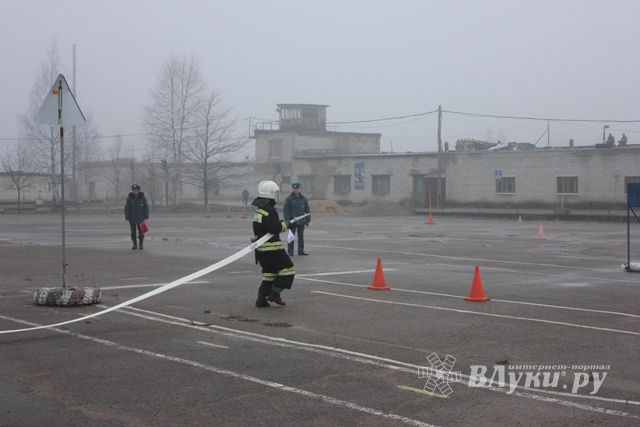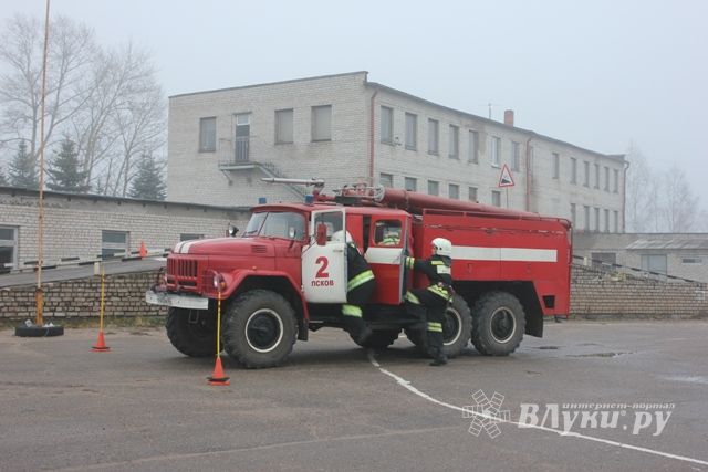 Как сообщили Интернет-порталу Влуки.ру в пресс-службе ГУ МЧС РФ по Псковкой области, участники должны были пройти три этапа – три круга дистанции с разными упражнениями.Нормативы были взяты из курса профессиональной подготовки с личным составом пожарной охраны. По сигналу «На старт, внимание, марш!» огнеборцы быстро занимали места в пожарной автоцистерне и с включенной световой сигнализацией устремлялись в первый круг, на котором их ждало такое упражнение как «Колея». Водители пожарных машин показали свое мастерство в управлении транспортным средством: они должны были передним ходом провести правые колеса автомобиля между столбиками. После остановки пожарные должны были проложить рукавные линии и подать воду по мишени. Во втором этапе участники проезжают следующий круг и выполняют упражнение «Змейка»: водитель передним ходом должен проехать последовательно все проезды. Останавливаются на линии старта и подают воду от стационарного лафетного ствола по мишени. И снова в машину на третий, заключительный круг по дистанции. После остановки из правого заднего отсека один из участников команды достает огнетушитель и приступает к тушению горящей жидкости. Затем уже под звук сирен огнеборцы подъезжали к участку, где расположен водоисточник и выполняли боевое развертывание от автоцистерны с установкой ее на водоем и подачей одного ствола «Б» от рабочей линии на два рукава.